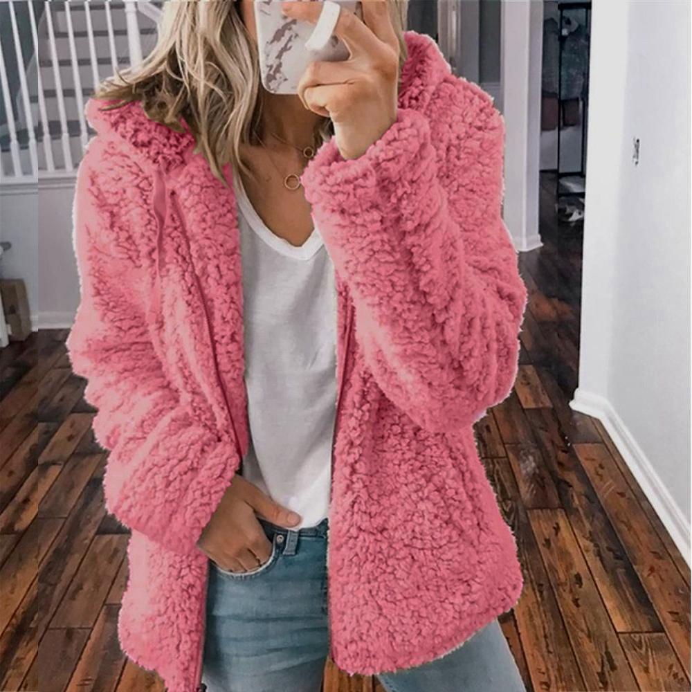 Fashion Zipper Plush Solid Color Hooded Tops Casual Sweatshirts Coat