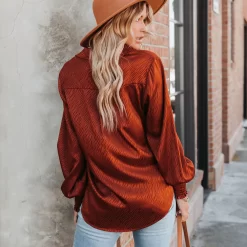 Women Loose Lapel Lantern Long Sleeve Shirt